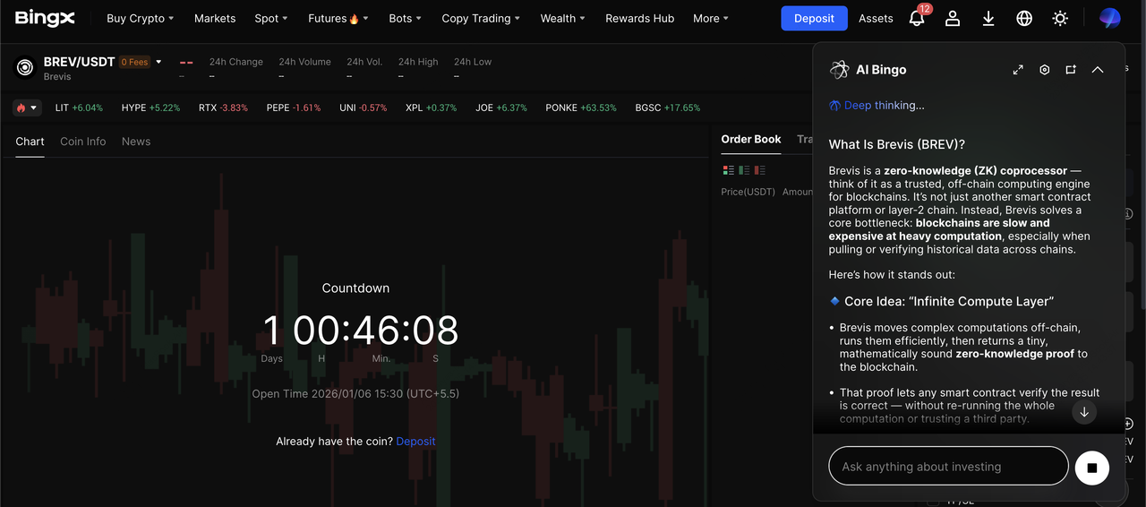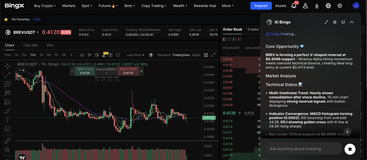 عقد BREV/USDT الدائم في سوق العقود الآجلة مدعومًا بـ BingX AI