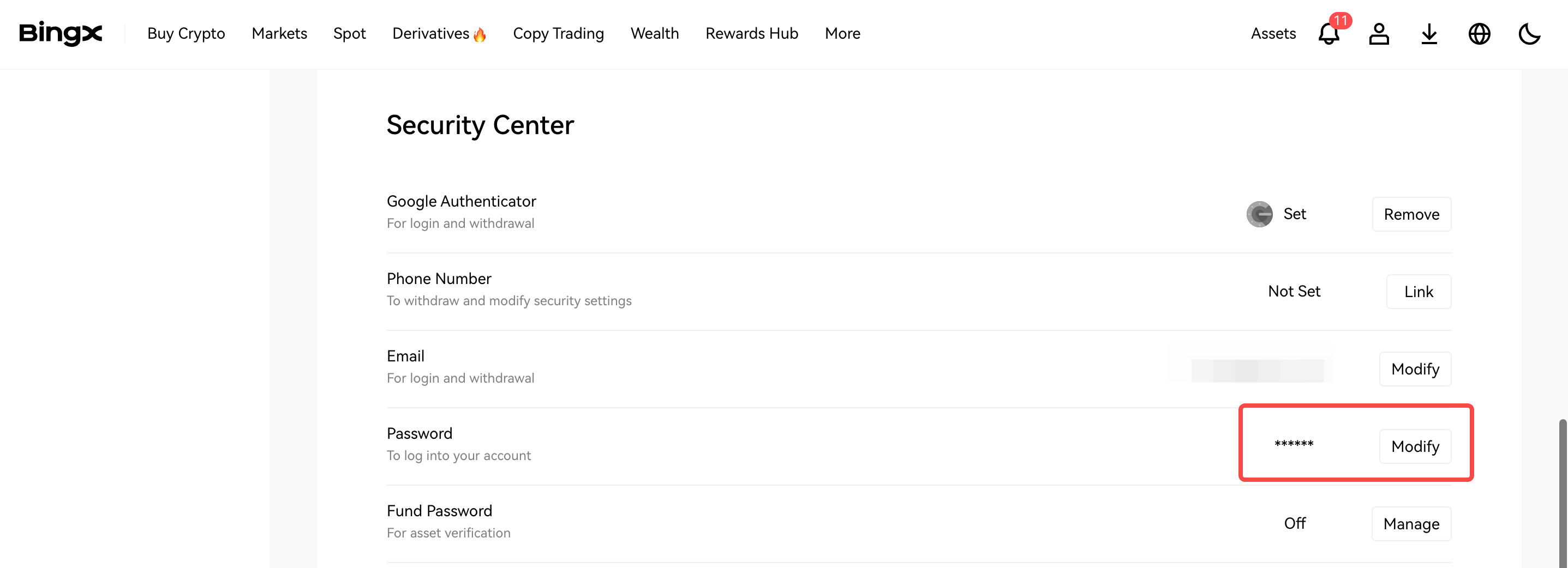 تضيف المصادقة متعددة العوامل (MFA) طبقة إضافية من الأمان من خلال مطالبتك بتوفير خيار تحقق إضافي واحد على الأقل بالإضافة إلى كلمة المرور الخاصة بك. تقدم BingX العديد من خيارات المصادقة متعددة العوامل، بما في ذلك التحقق من البريد الإلكتروني وGoogle Authenticator ورقم الهاتف.