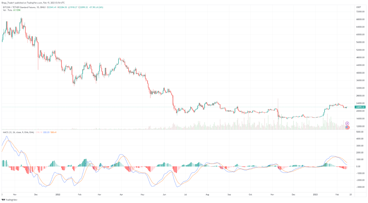 Bitcoin tăng 1,6% trong 24 giờ qua, và tăng lên mức cao nhất trong ngày là 22.333,33 USD. Tiền điện tử lớn nhất đã phục hồi sau những tổn thất gần đây trong phiên hôm nay, và giá đã tăng lên trên mức giá 22.000 đô la. Nếu phe bò đẩy giá lên trên đường trung bình động hàm mũ 20 ngày (22.243 đô la), thì cặp BTC/USDT có thể tăng lên 23.500 đô la.