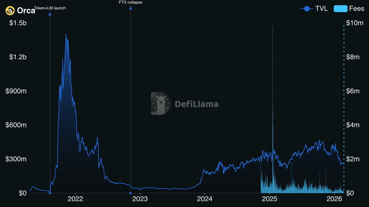 Orca TVL und Gebühren | Quelle: DefiLlama