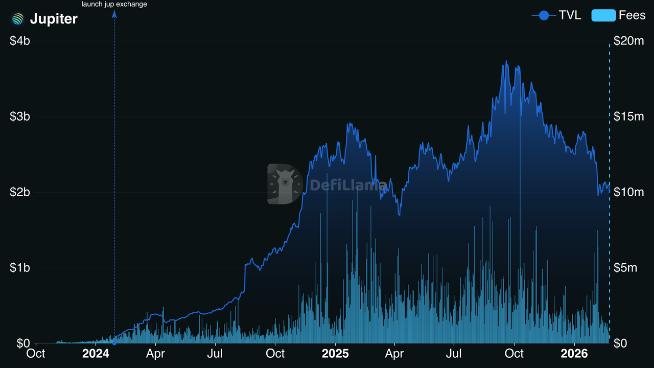 Jupiter TVL und Gebühren | Quelle: DefiLlama