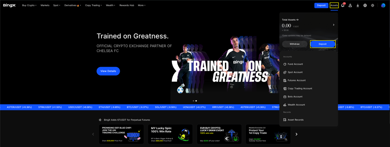 • Go to bingx.com, log in, and click on "Assets" then choose "