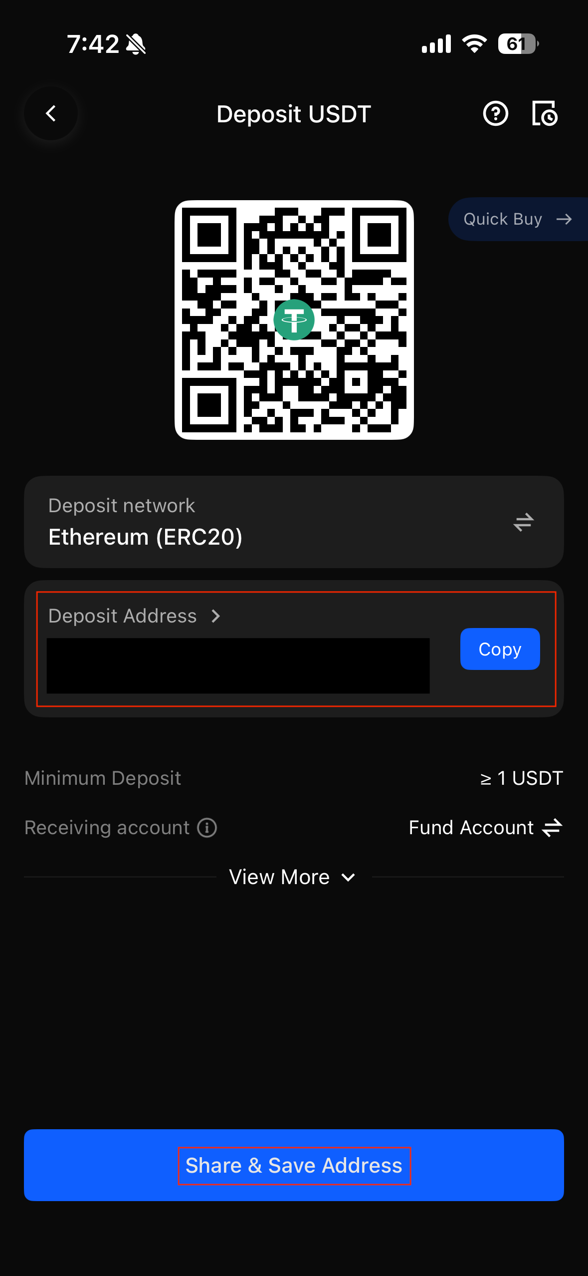 • Copy your exact deposit address. (and memo/tag if the asset requires it).