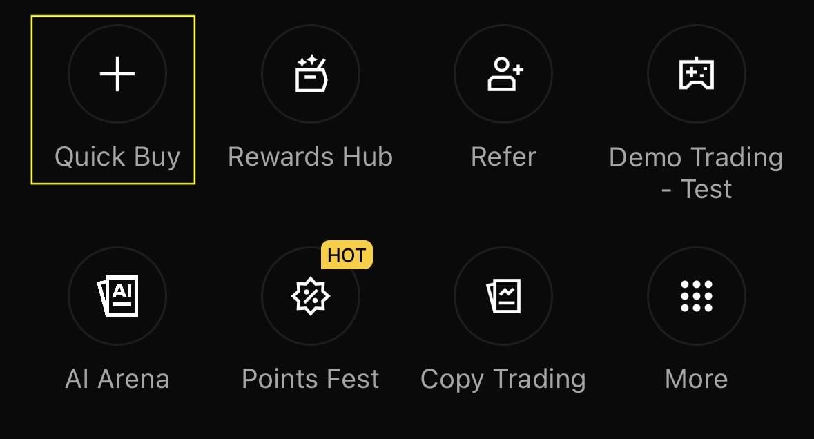2. Open “Buy Crypto” in the app: On the home screen, tap "Buy Crypto" and select "Quick Buy" (or the Credit/Debit Card option) to start the card purchase flow.