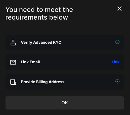 • KYC required: Complete identity verification before your first fiat or card purchase. Higher KYC levels raise limits.