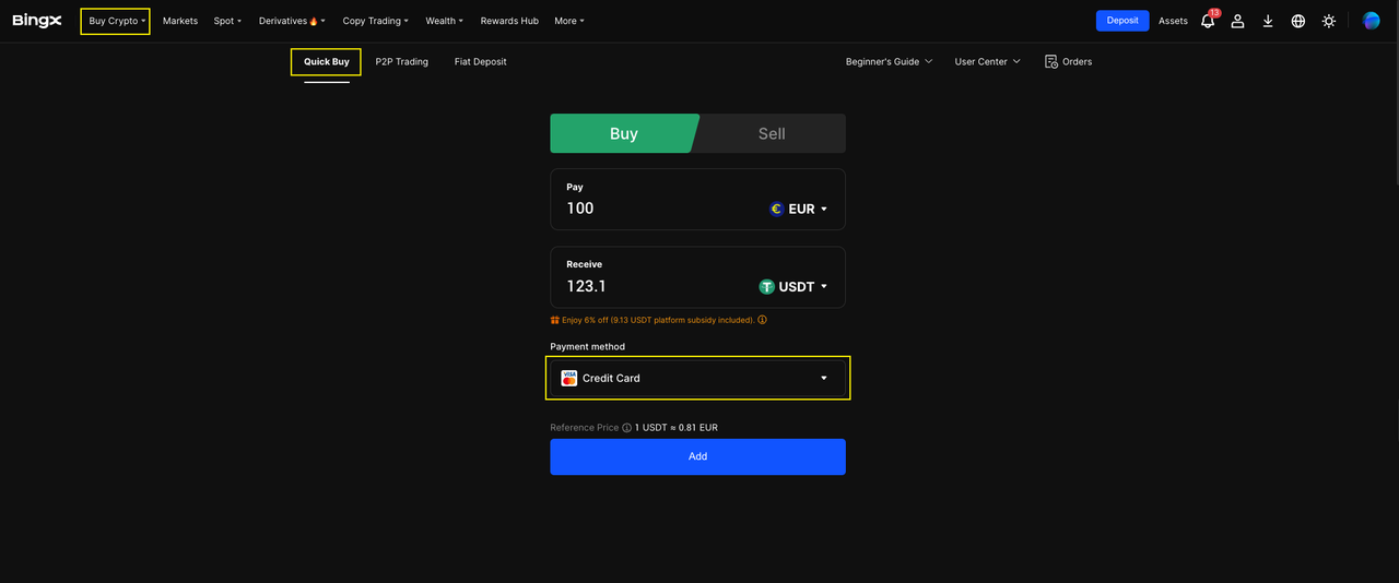 How to Buy Crypto with Visa or Mastercard on BingX Web