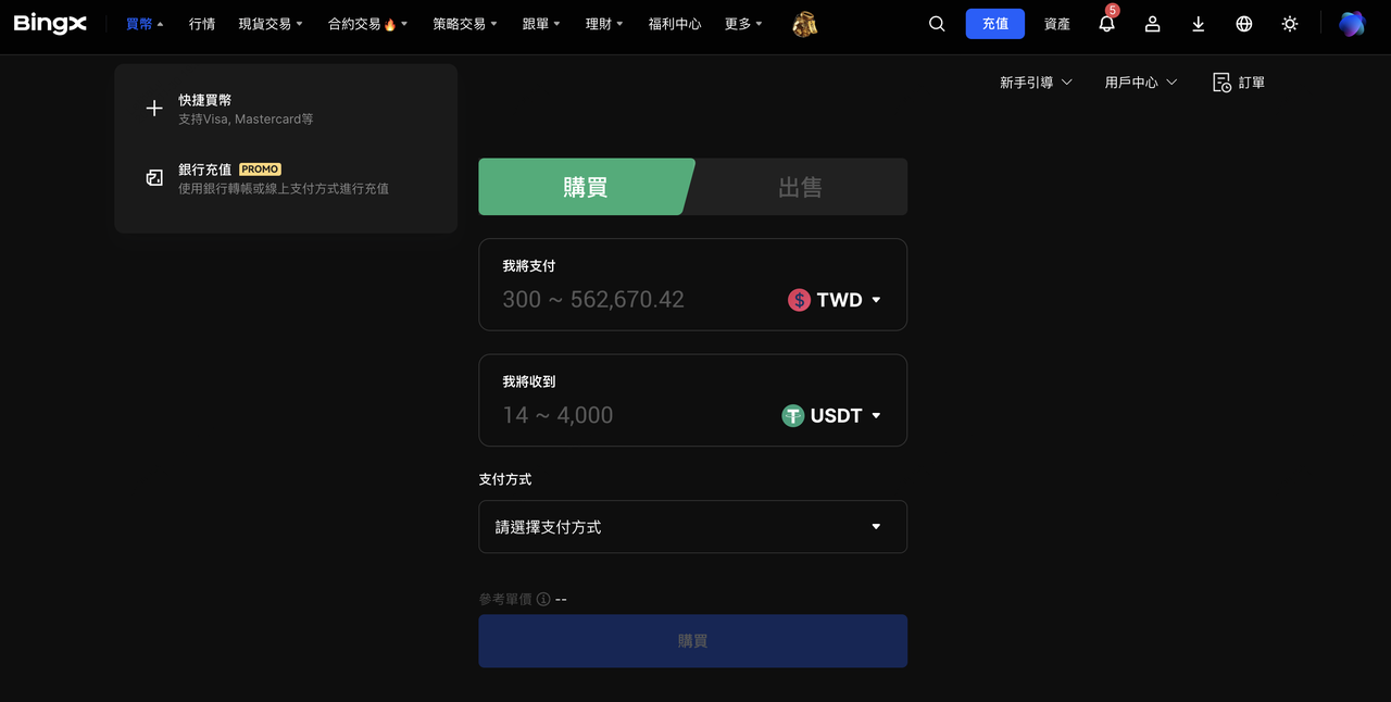 Currently supports credit/debit card stablecoin purchases, third-party payments, and on-chain transfers from other wallets or exchanges. The platform does not provide direct TWD deposits, requiring USDT acquisition first before trading.