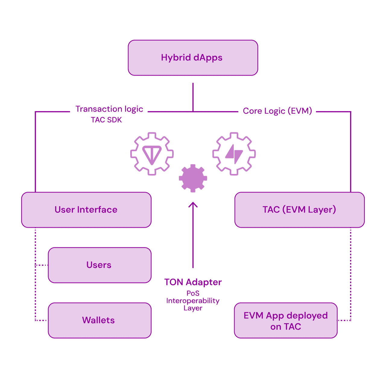 2. TON Adapter (Translation Layer): This is TAC’s secret sauce. It acts like a universal translator between Telegram’s TON blockchain and the TAC EVM Layer. When a Telegram user wants to make a DeFi transaction (like swapping tokens), the TON Adapter securely picks up the request, translates it for the EVM chain, and sends the result back, all without the user noticing the backend complexity.