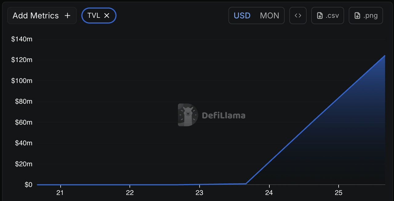 These metrics are achieved through innovations like parallel transaction execution, a custom database called MonadDB for efficient state management, and a separation of consensus from execution, allowing nodes to agree on block order before processing transactions. According to DefiLlama, Monad's TVL is over $124 million as of November 2025.