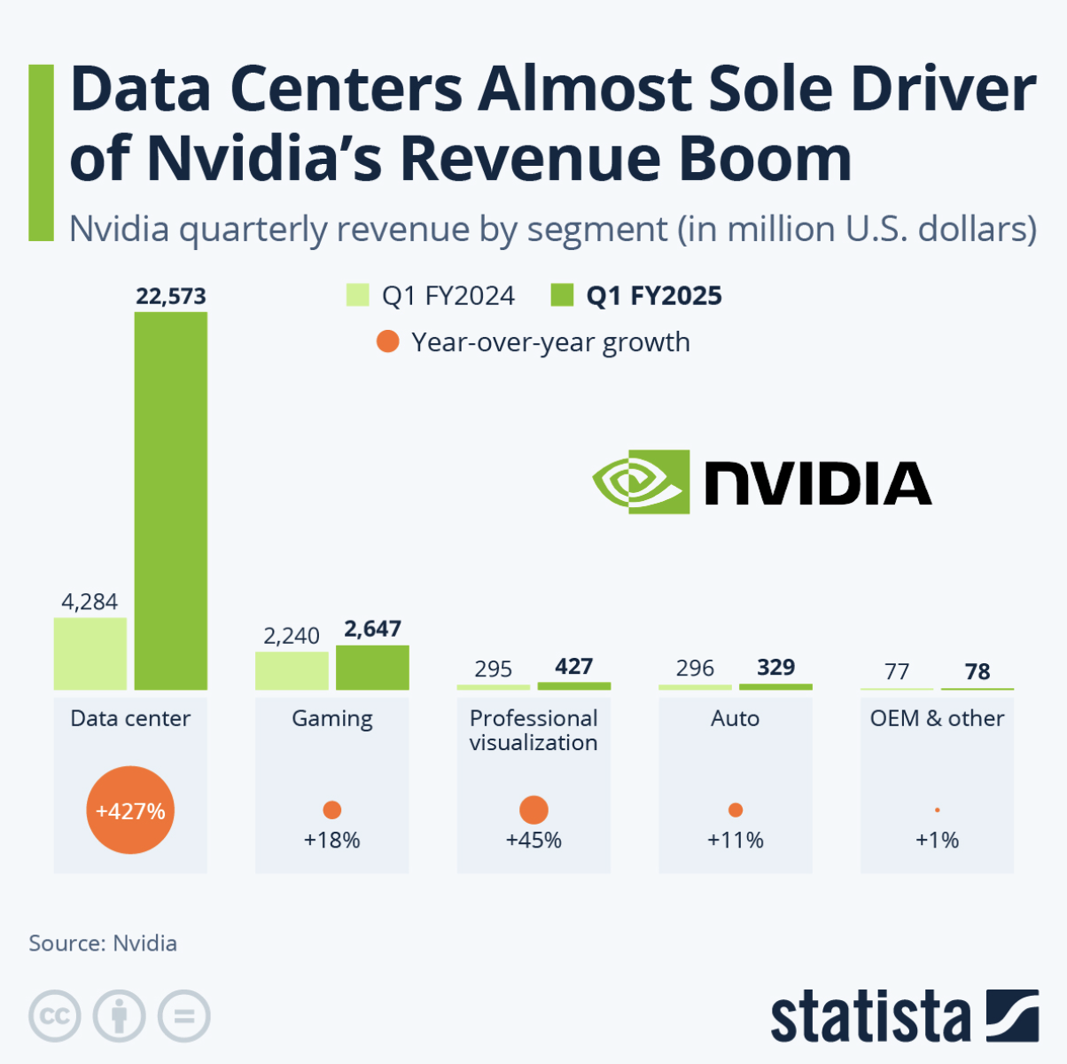 • Data Center and AI: Its most important business. NVIDIA provides the GPUs, server platforms and networking solutions that power AI training, inference and large-scale cloud computing.