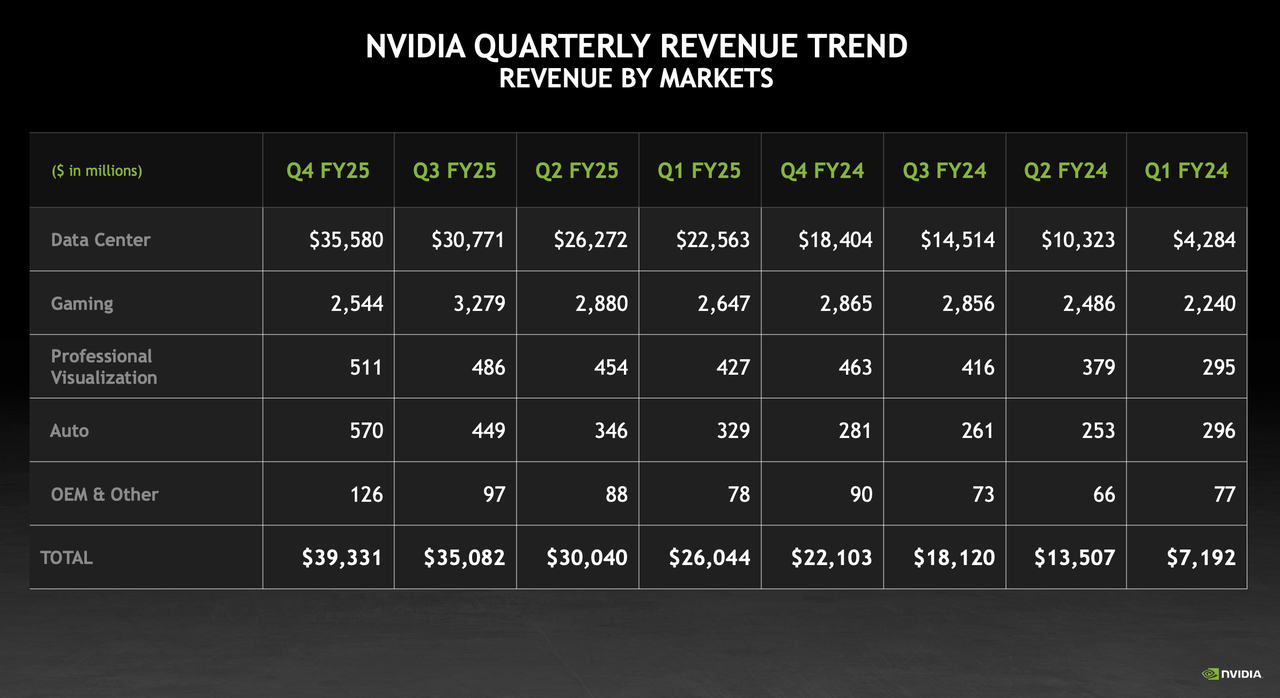 1. 66% YoY Data Center Revenue Growth to $51.2 billion: NVIDIA’s data center business set a new record, supported by rising demand for AI training and inference across cloud providers and enterprises.