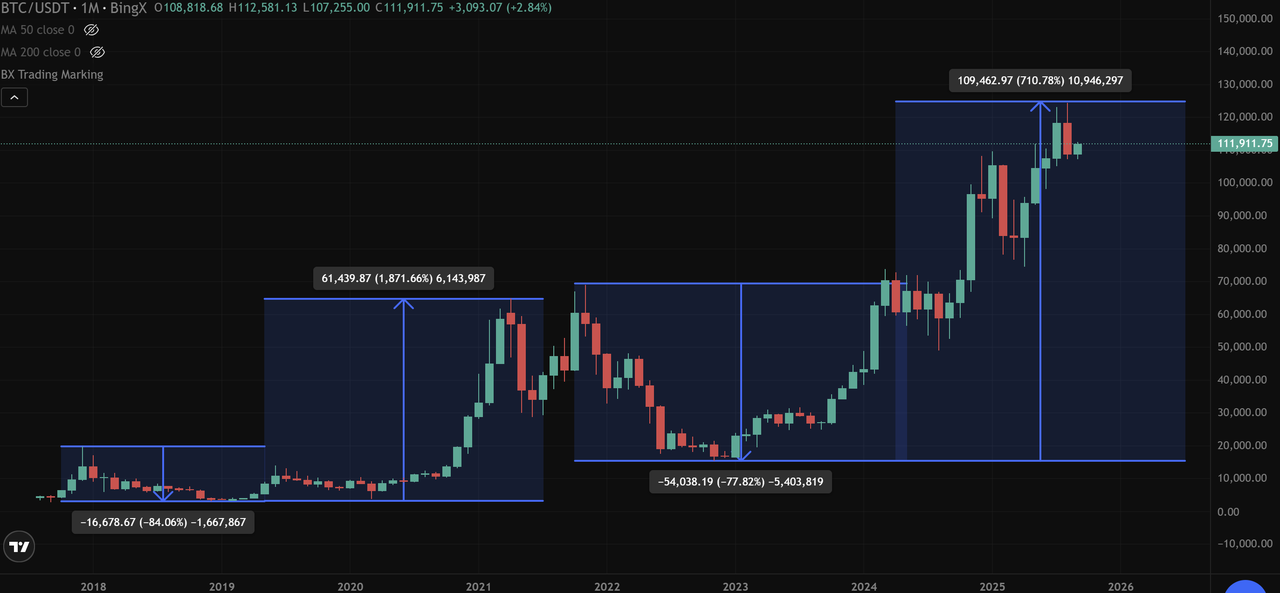 More recently, after bottoming below $16,000 in November 2022, Bitcoin surpassed $110,000 in 2025. Each cycle rewarded those who accumulated steadily through downturns.