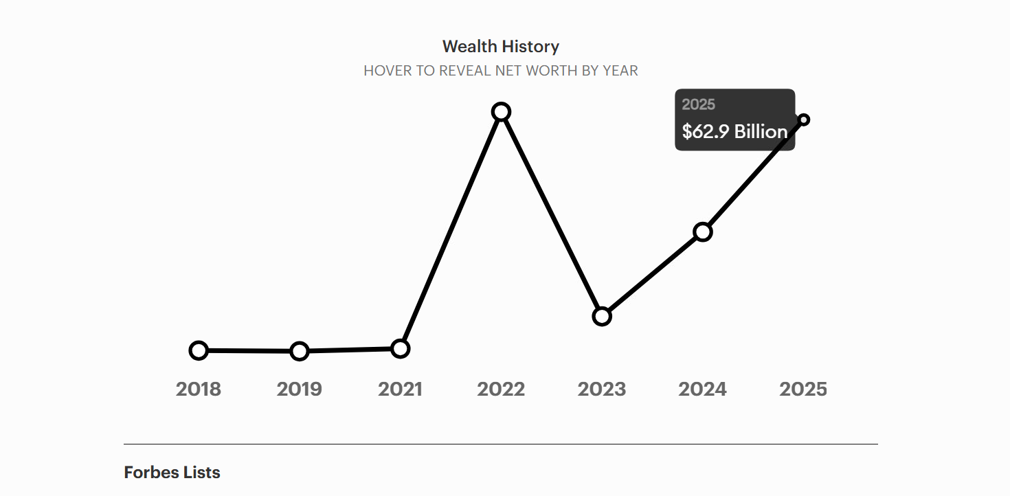 By contrast, Bloomberg’s Billionaires Index has historically presented more conservative estimates, with figures previously reported around $36 billion or higher, depending on market conditions and valuation assumptions.