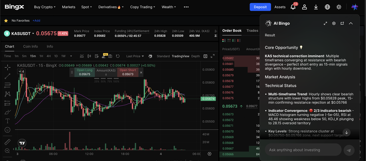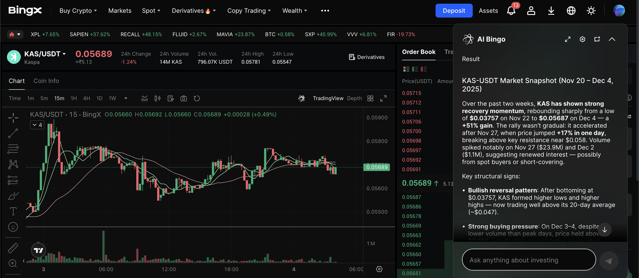 You can buy and trade KAS easily on BingX, a leading global crypto exchange enhanced by BingX AI for smarter insights and a more efficient trading experience.