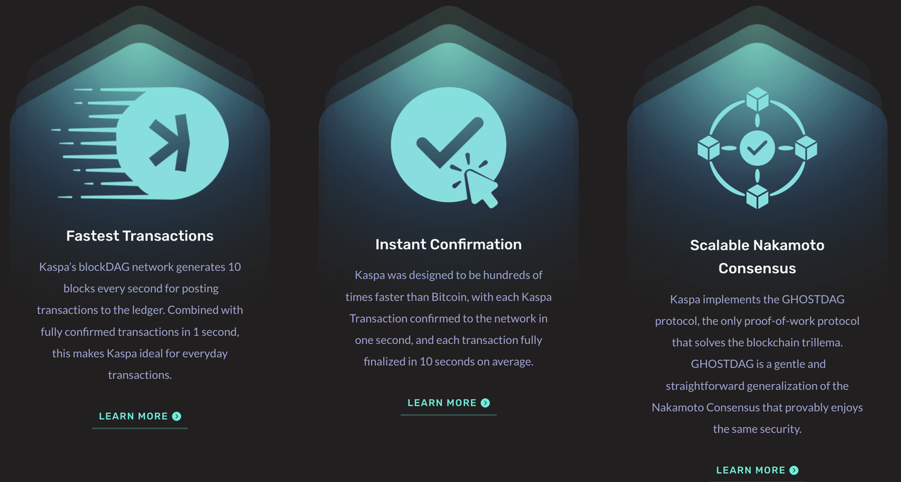 1. High-speed PoW confirmations: Kaspa delivers near-instant inclusion and 10 blocks per second (BPS), with upgrades targeting 32–100+ BPS for greater throughput.