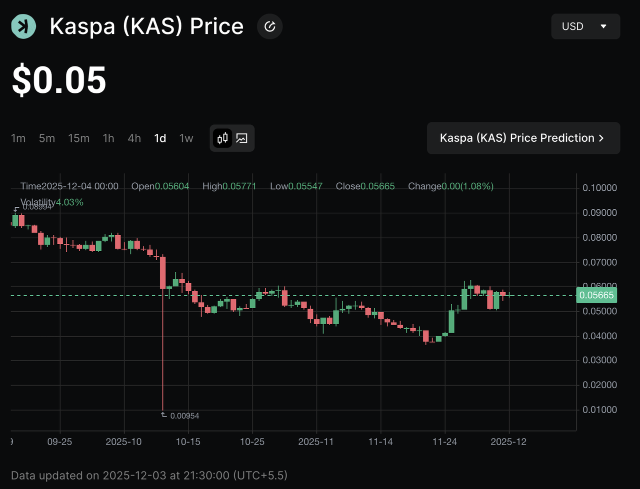 • Market volatility: KAS has experienced strong rallies and drawdowns; like other altcoins, it remains highly volatile and speculative.