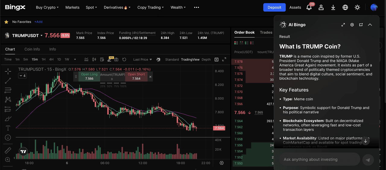 TRUMP/USDT perpetual contract on futures market powered by BingX AI