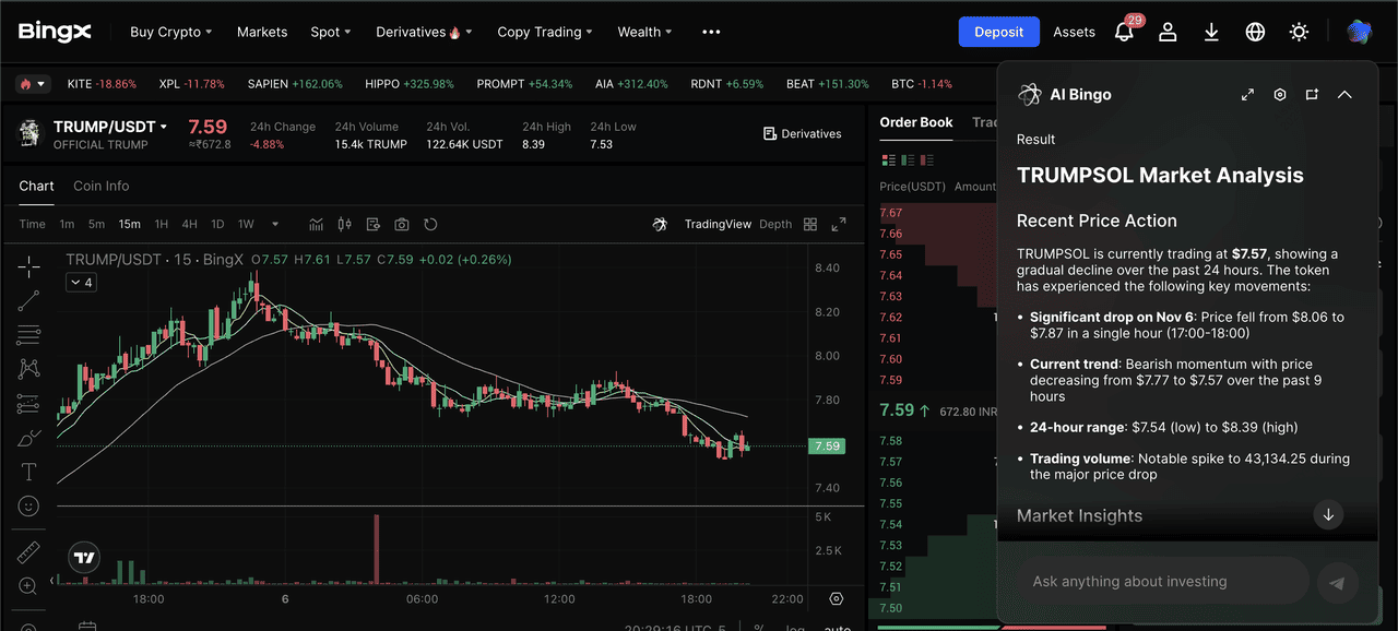 TRUMPSOL/USDT trading pair on the spot market powered by BingX AI insights