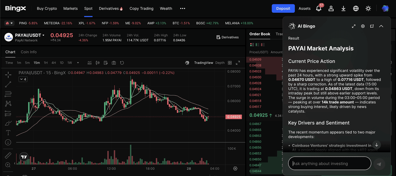 PAYAI/USDT trading pair on the spot market powered by BingX AI insights