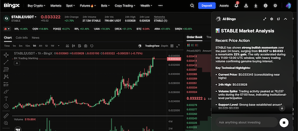 STABLE/USDT trading pair on the spot market powered by BingX AI insights
