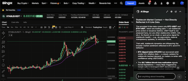 STABLE/USDT perpetuals on the futures market featuring BingX AI insights