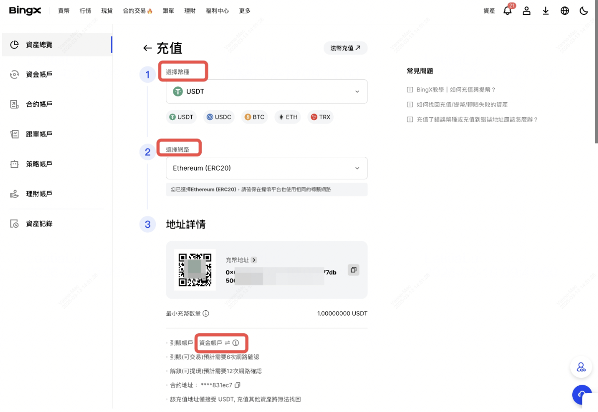 步驟 2:準備交易資金(USDT)