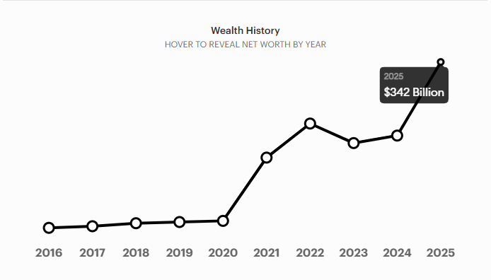 • 2020–2021: Driven by Tesla’s meteoric rise and entry into the S&P 500, Musk’s wealth jumped from $27 billion to over $300 billion, briefly making him the first person to cross that threshold.
