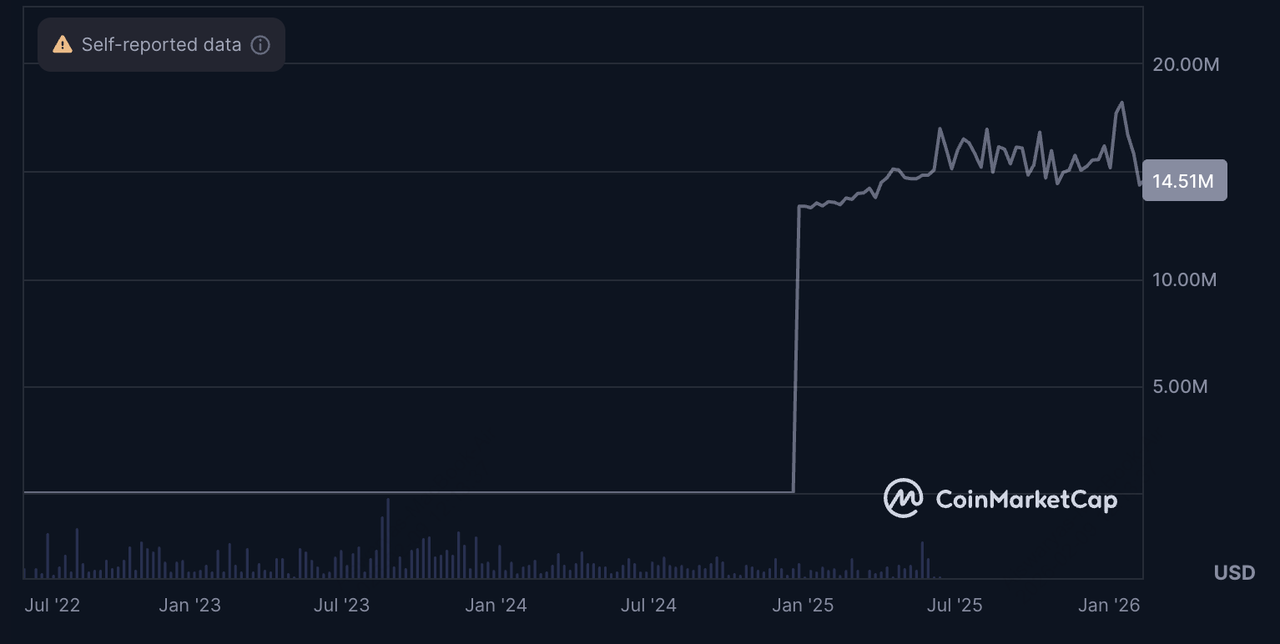 JPYC market cap crosses $14.5 million as of February 2026 | Source: Coinmarketcap