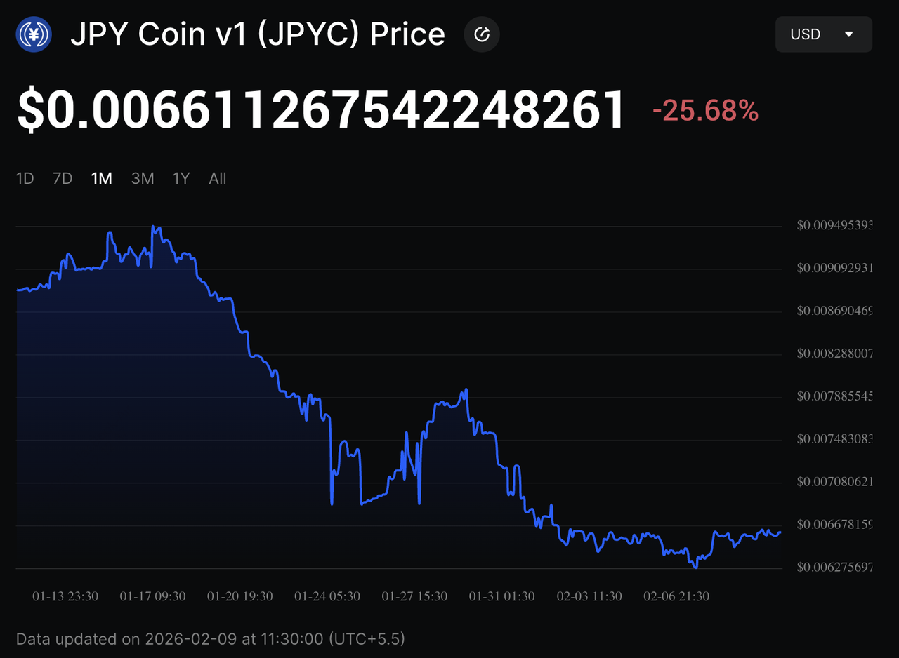 • Ecosystem scale still smaller than USD stablecoins: With a circulating supply of approximately 2.14 billion JPYC, JPYC’s liquidity and DeFi integrations remain limited compared with dominant