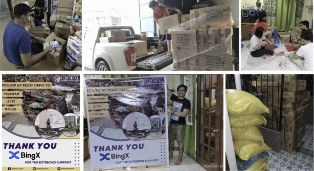 Al otro lado del mar, en el sudeste asiático, BingX prestó apoyo y ayuda a los habitantes de Filipinas cuyas vidas se vieron gravemente afectadas por los tifones y corrimientos de tierra que asolaron las ciudades de Palawan, Leyte e Ilo-ilo respectivamente.
