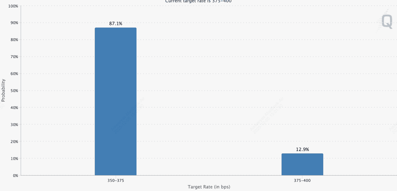 Probabilidades de tasa objetivo para la reunión de la Fed del 10 de diciembre | Fuente: CME FedWatch