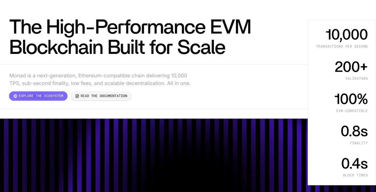 Fundado en 2024, Monad es una blockchain de capa 1 compatible con EVM diseñada para alto rendimiento, finalidad casi instantánea y tarifas extremadamente bajas. El proyecto ganó impulso temprano a través de su preventa de Coinbase ampliamente seguida, y la emoción se aceleró con el lanzamiento oficial de la mainnet el 24 de noviembre, que vio más de 125 proyectos desplegarse dentro del primer mes.
