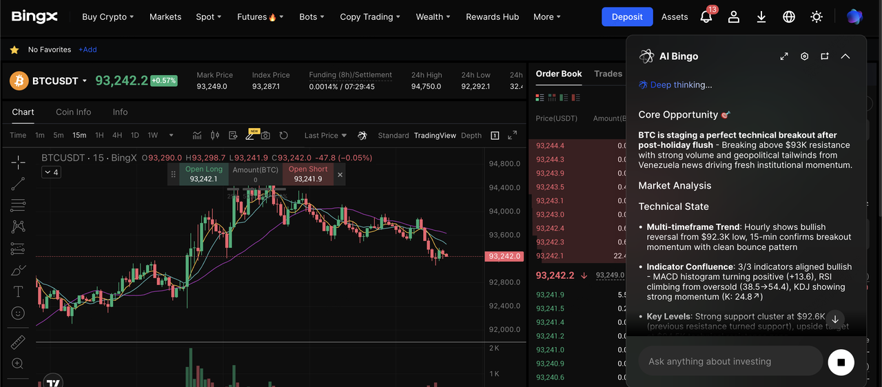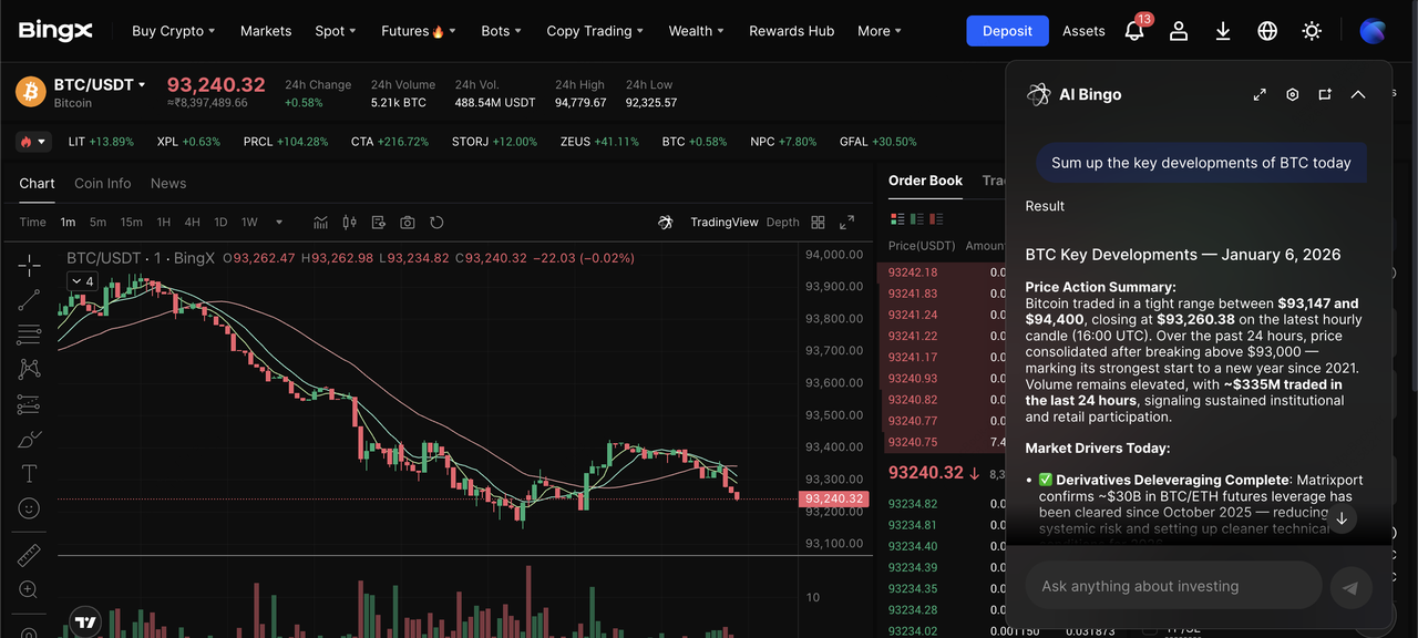 Paire de trading BTC/USDT sur le marché spot alimentée par les analyses de l'IA de BingX