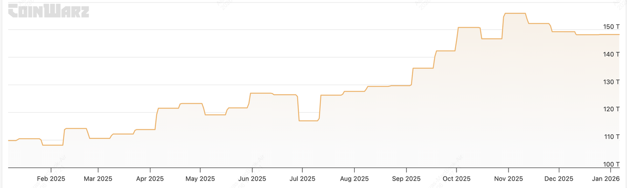 Troisièmement, les tendances de difficulté reflètent l'économie des mineurs et la discipline du capital. En janvier 2025, la difficulté était d'environ 109 trillions, contre 148,26 trillions en janvier 2026, ce qui représente une augmentation d'environ 35 % d'une année sur l'autre. Cette forte augmentation annuelle indique des investissements en capital soutenus et des améliorations d'efficacité dans le secteur minier, même si les marges post-halving se resserrent. La boucle de rétroaction résultante entre le prix du Bitcoin, les coûts énergétiques et la difficulté garantit que seules les opérations les plus efficaces restent compétitives, renforçant l'évolution de Bitcoin vers un réseau énergétique axé sur l'efficacité plutôt qu'une course spéculative effrénée.
