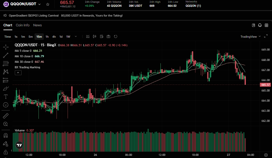 Paire de trading QQQON/USDT sur le marché spot BingX