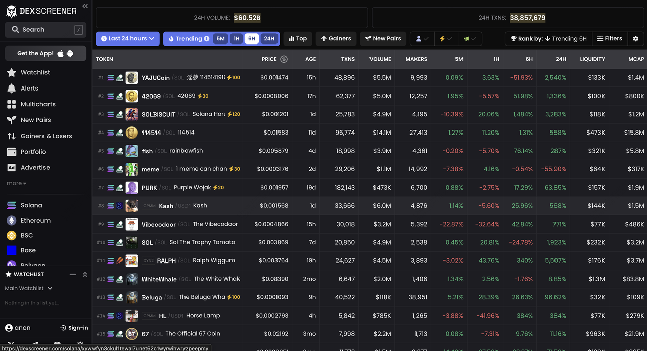 Cette plateforme entièrement gratuite égalise les chances pour tous, des traders particuliers à la recherche de memecoins émergents et de nouveaux lancements de tokens aux développeurs professionnels surveillant les pools de liquidité et la performance des protocoles, permettant une découverte plus rapide des opportunités de marché dans un écosystème où une entrée précoce peut générer des rendements substantiels au milieu de tendances en évolution rapide.