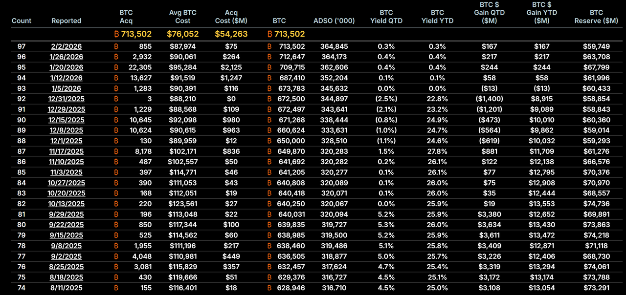 La première semaine de février 2026 a fourni un test de stress dramatique pour la stratégie de Saylor. Suite à une correction de marché brutale, Bitcoin a chuté dans la fourchette de 72 000 $, poussant brièvement la trésorerie massive de Strategy Inc. « sous l'eau ».