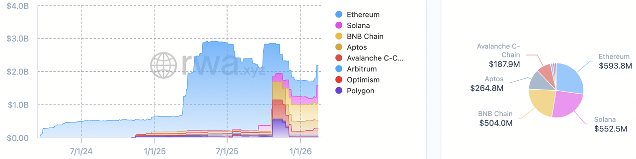 Kapitalisasi pasar Treasury BUIDL dan rincian menurut blockchain | Sumber: RWA.xyz