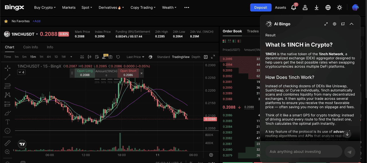 Kontrak perpetual 1INCH/USDT di pasar futures yang didukung oleh AI BingX
