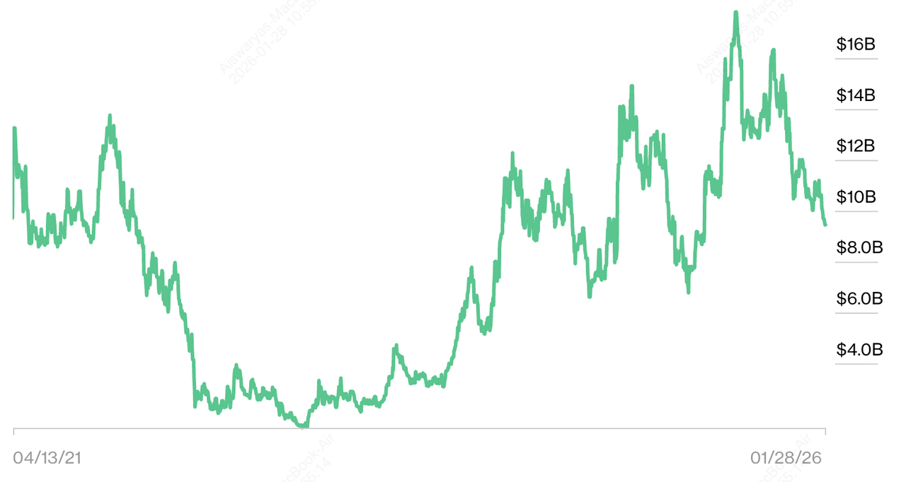 Al gennaio 2026, le stime vanno da 9 miliardi a 14 miliardi di dollari, a seconda del prezzo delle azioni di Coinbase e delle condizioni di mercato.