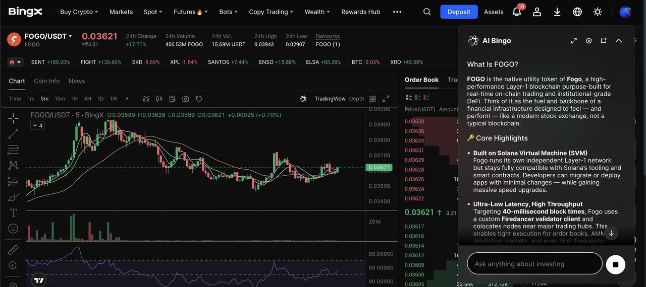 FOGO è disponibile per il trading su BingX, che offre mercati spot e futures supportati da strumenti