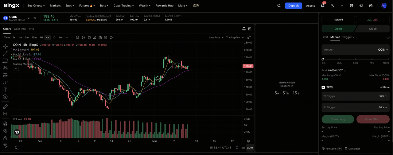 BingX先物でUSDTを使用してCoinbase(COIN)株式無期限のロングまたはショート