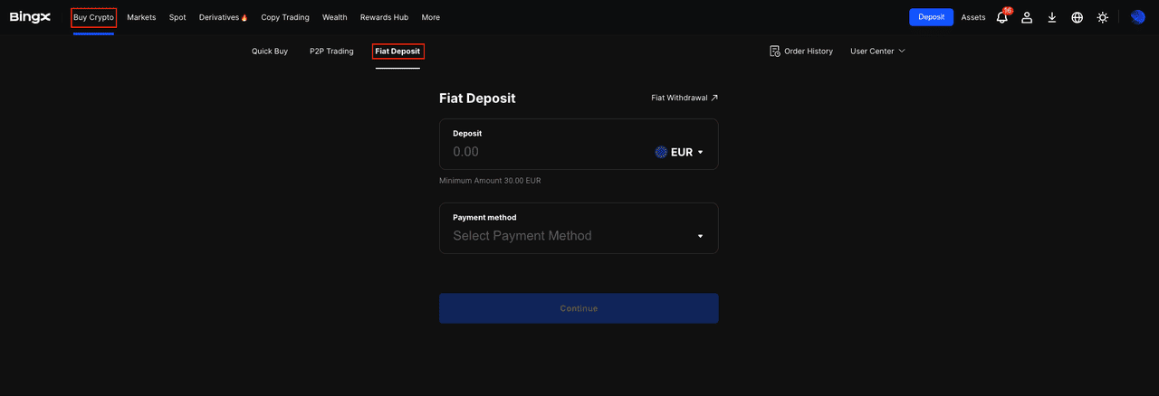 Sign up on BingX and verify your identity. Without KYC, fiat deposits are not possible.