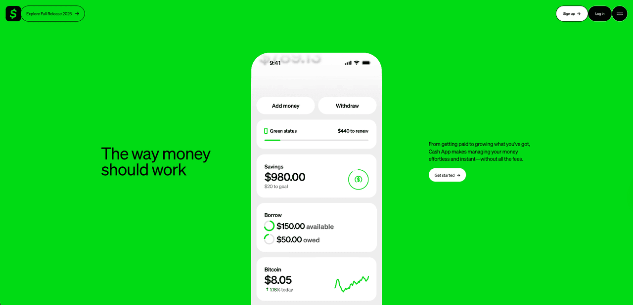 米国では、Cash Appが、ビットコインへの直接的なエクスポージャーも求める何百万人ものユーザーにとって、静かにデフォルトの銀行代替手段となっています。Blockによって構築され、P2Pウォレットと貯蓄、株式投資、統合されたビットコインサービスを組み合わせています。給与をCash Appに振り込み、デビットカードで支払い、貯蓄残高を保有し、ごく少額からビットコインを売買できます。また、コールドストレージを含む外部ウォレットへのBTC引き出しオプションがあり、これは多くの純粋なカストディアルなフィンテックアプリとは一線を画しています。その強みは、ビットコインに明確に焦点を当て、Blockのより広範な決済エコシステムとの緊密な統合にあり、多数のアルトコインを追いかけることではありません。