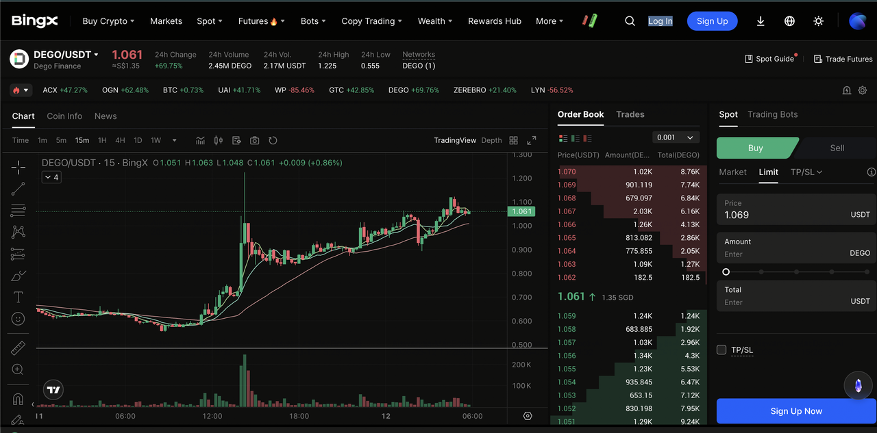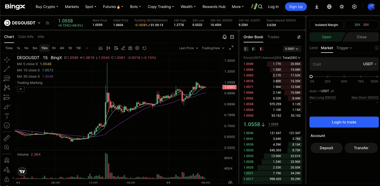 3. 取引を実行:成行または指値注文を使用してDEGOトークンを購入し、安全なBingXウォレットに保存します。