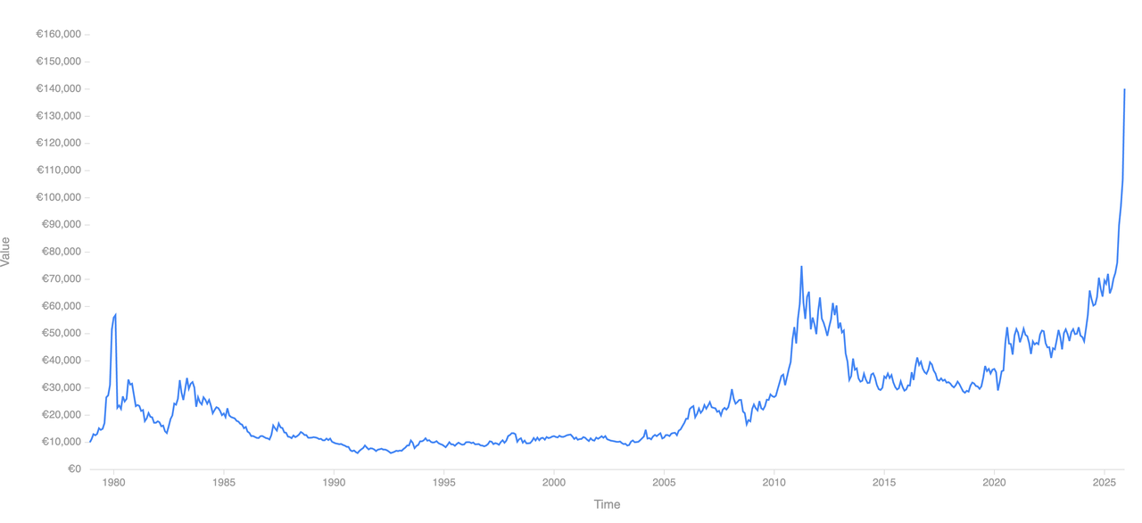 Kluczowy wniosek: Srebro rzadko trenduje płynnie. Historycznie, pozostaje w tyle za złotem we wczesnej fazie stresu makro, ale gdy poluzowanie monetarne, przepływy inwestycyjne i fizyczne napięcie się wyrównają, srebro ma tendencję do gwałtownego przewyższania złota w ujęciu procentowym, często późno w cyklu metali szlachetnych. Ten wzór pomaga wyjaśnić zarówno eksplozywny potencjał wzrostu srebra, jak i równie ostre spadki, wchodząc w 2026 rok.