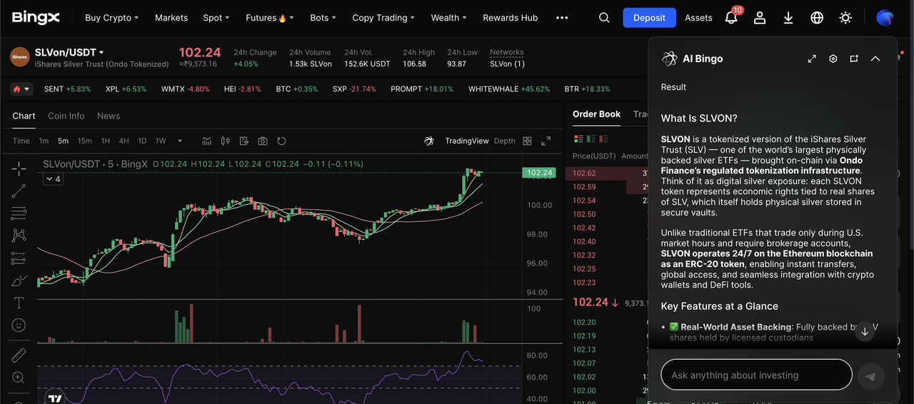 Para handlowa SLVon/USDT na rynku spot wspierana przez BingX AI insights