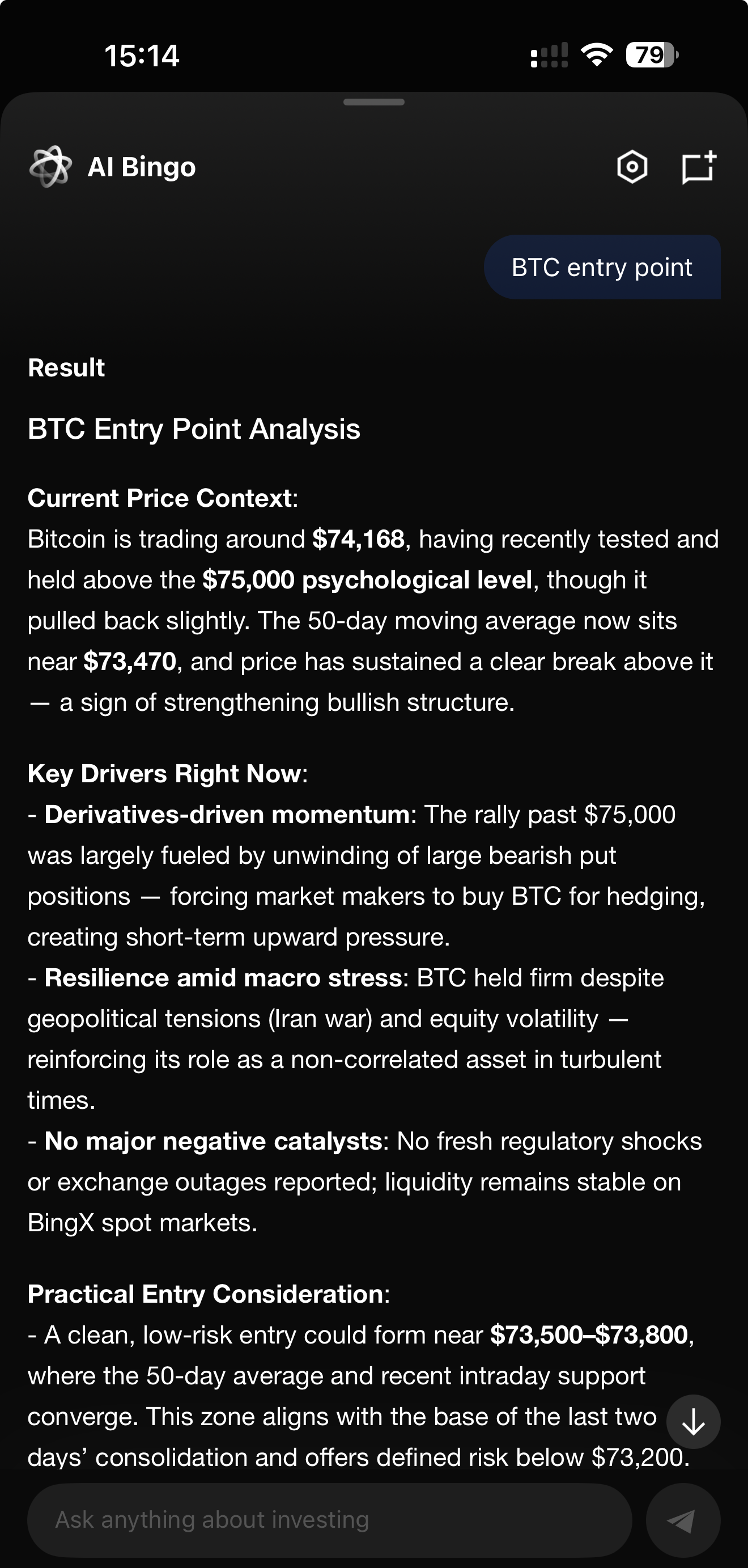 O que realmente diferencia a BingX é seu sofisticado conjunto BingX AI, incluindo AI Bingo e AI Master. Em vez de apenas notificá-lo quando o BTC atinge um determinado preço, a BingX usa aprendizado de máquina para alertá-lo sobre volatilidade anormal, mudanças de sentimento ou movimentos significativos de baleias no blockchain. Esses agentes de IA atuam como assistentes proativos 24/7, fornecendo cenários de mercado estruturados e sinais pré-analisados que permitem antecipar mudanças de preços em vez de apenas reagir a elas.