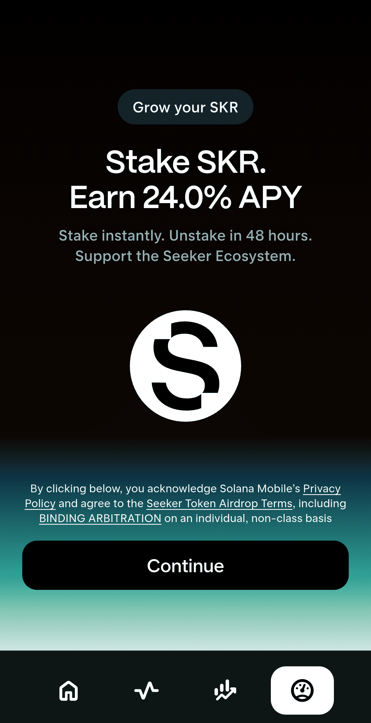 Para desenvolvedores: Se você enviou um aplicativo qualificado para a Solana Mobile dApp Store durante o Seeker Season 1, reivindique seu SKR via Portal de Publicação, conforme descrito pela Solana Mobile.