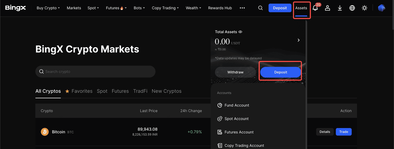 1. Obtenha Seu Endereço de Depósito SKR na BingX
